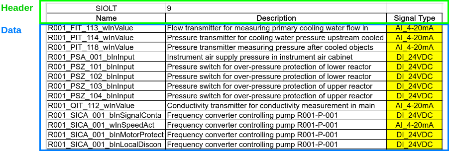 The PLCCreator Signal IO List is a streamlined version of an Instrument IO List or Machine IO List, containing only PLC creation relevant columns.