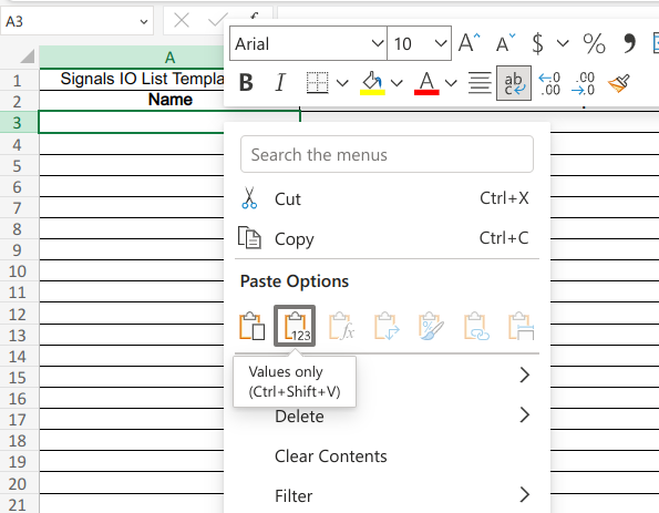 - Save the completed template as Customer-Signal-IO-List.xlsx