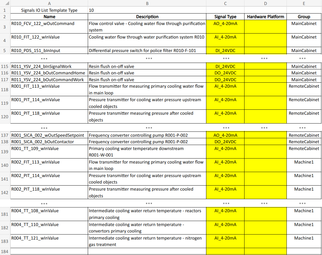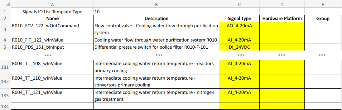 For this project (based on the architecture selected in Step 1 and the signal-based source data), you'll need to use Signal IO List for Single Fieldbus Architecture with its template: Signal IO List Template Single Fieldbus Common.xlsx