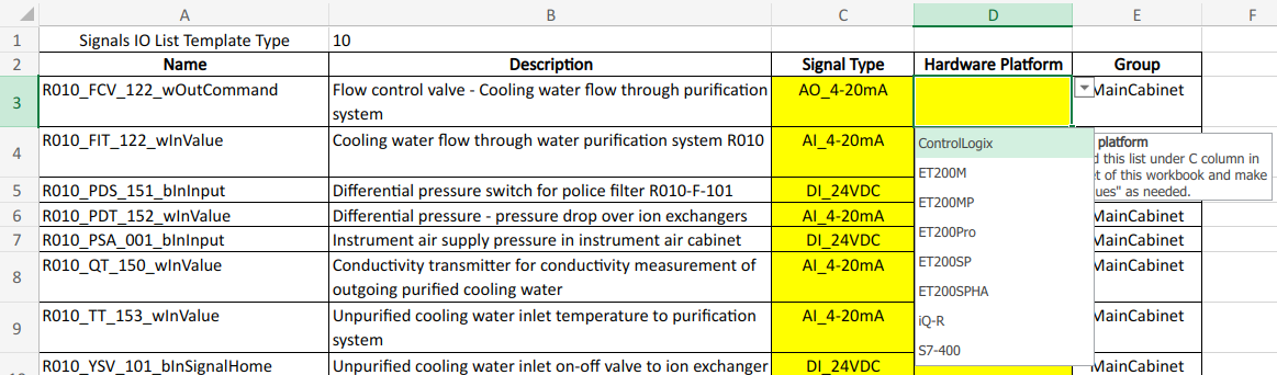 Convert your instrument IO list or index into the standardized andarchitecturespecific IO List format using Excel.
