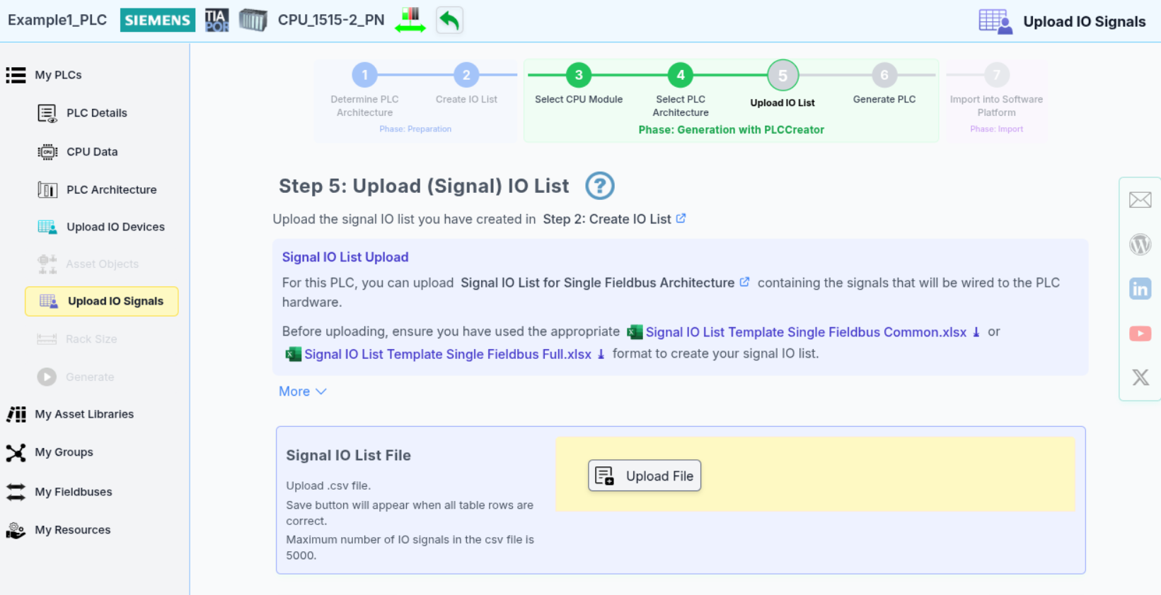 Now that you've created yourSignal IO List, proceed to upload it: