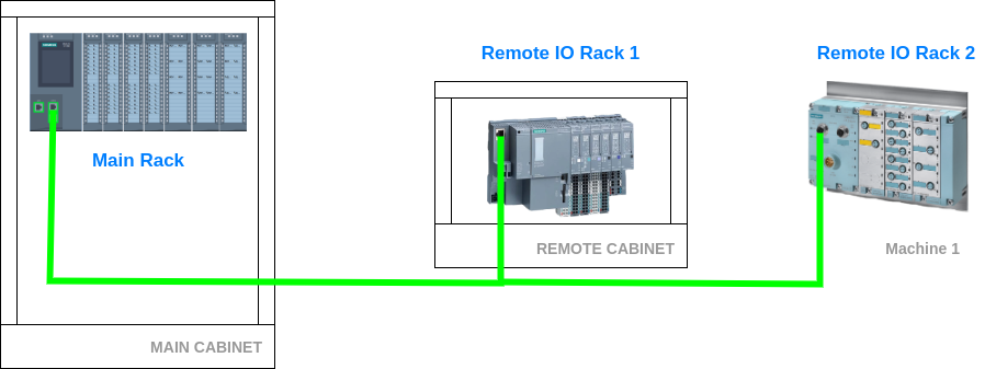 We will create a PLC configuration for a control system comprising three electrical cabinets (Figure 1):