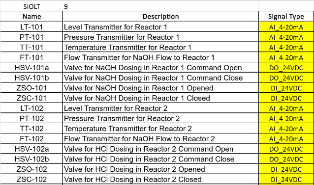 The PLCCreator Signal IO List is a streamlined version of an Instrument IO List or Machine IO List, containing only PLC creation relevant columns.